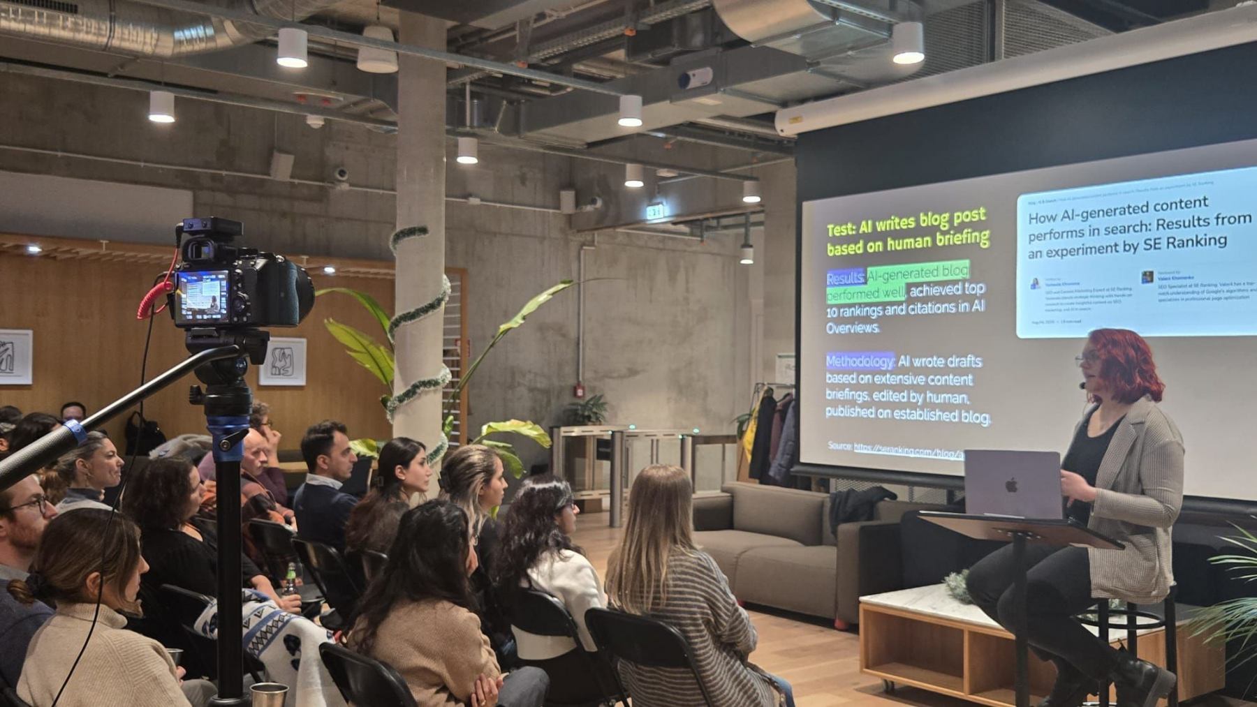 One of the highlights of her talk was a study comparing AI-written content vs. human-written content. The results were eye-opening:
